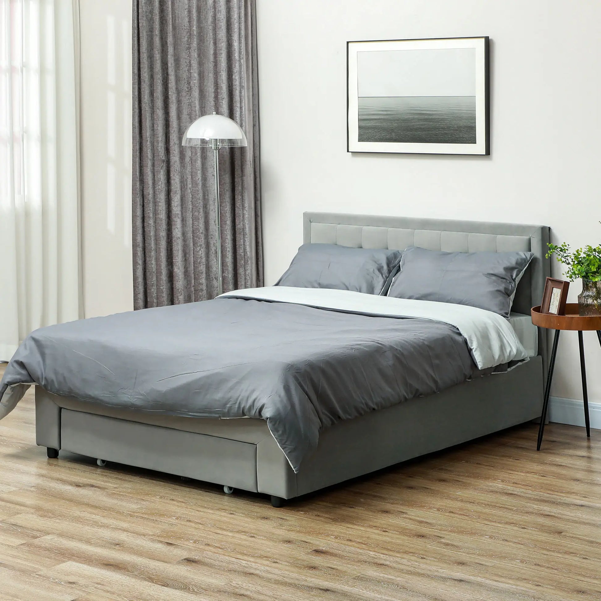 HOMCOM Double Size Ottoman Bed Frame, with Front Drawer